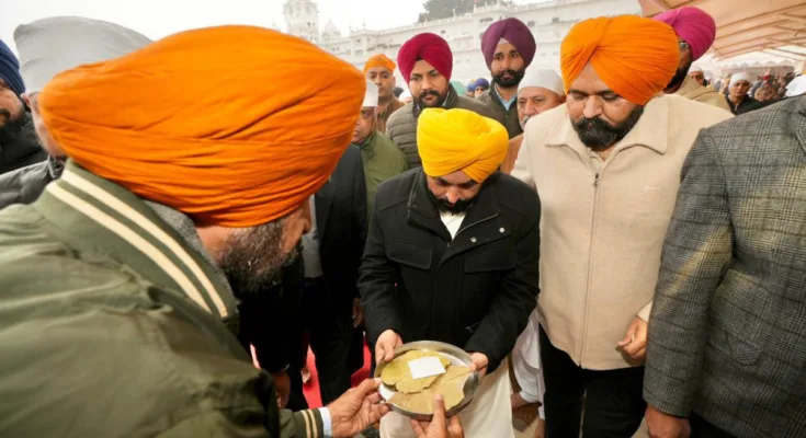 ਅੰਮ੍ਰਿਤਸਰ, 15 ਜਨਵਰੀ : ਪੰਜਾਬ ਦੇ ਮੁੱਖ ਮੰਤਰੀ ਭਗਵੰਤ ਸਿੰਘ ਮਾਨ ਅੱਜ ਨੰਗੇ ਪੈਰੀਂ ਅਰਦਾਸ ਕਰਦੇ ਹੋਏ ਇਕ ਨਿਮਾਣੇ ਸਿੱਖ ਵਜੋਂ ਸ੍ਰੀ ਅਕਾਲ ਤਖ਼ਤ ਸਾਹਿਬ ਅੱਗੇ ਨਤਮਸਤਕ ਹੋਏ। ਮੁੱਖ ਮੰਤਰੀ ਨੇ ਅੱਜ ਆਪਣਾ ਪੂਰਾ ਦਿਨ ਸਿੱਖਾਂ ਦੇ ਸਰਵਉੱਚ ਅਸਥਾਨ ਨੂੰ ਸਮਰਪਿਤ ਕੀਤਾ। ਸ੍ਰੀ ਅਕਾਲ ਤਖ਼ਤ ਸਾਹਿਬ ਸਕੱਤਰੇਤ ਵਿਖੇ ਜਥੇਦਾਰ ਸਾਹਿਬ ਅੱਗੇ ਪੇਸ਼ ਹੋ ਕੇ ਆਪਣੇ ਪਹਿਲੇ ਬਿਆਨਾਂ ਬਾਰੇ ਵਿਸਥਾਰ ਵਿੱਚ ਸਪੱਸ਼ਟੀਕਰਨ ਦਿੱਤਾ। ਉਨ੍ਹਾਂ ਨੇ ਮੁੜ ਦੁਹਰਾਇਆ ਕਿ ਉਹ ਇਕ ਨਿਮਾਣੇ ਸਿੱਖ ਵਜੋਂ ਸ੍ਰੀ ਅਕਾਲ ਤਖ਼ਤ ਸਾਹਿਬ ਦੀ ਸਰਵਉੱਚਤਾ ਵਿੱਚ ਪੂਰਨ ਵਿਸ਼ਵਾਸ ਰੱਖਦੇ ਹਨ ਅਤੇ ਸ੍ਰੀ ਅਕਾਲ ਤਖ਼ਤ ਸਾਹਿਬ ਦਾ ਹਰ ਫੈਸਲਾ ਸਿਰ ਮੱਥੇ ਸਵਿਕਾਰ ਕਰਦੇ ਹਨ ਅਤੇ ਇਸ ਪਾਵਨ ਅਸਥਾਨ ਦੀ ਸਰਵਉੱਚਤਾ ਨੂੰ ਚੁਣੌਤੀ ਦੇਣ ਜਾਂ ਕਮਜ਼ੋਰ ਕਰਨ ਦਾ ਸਵਾਲ ਹੀ ਪੈਦਾ ਨਹੀਂ ਹੁੰਦਾ।