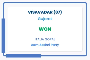ਅਧਿਕਾਰੀਆਂ ਨੇ ਦੱਸਿਆ ਕਿ ਗੁਜਰਾਤ ਦੇ ਦੋ ਹਲਕਿਆਂ ਲਈ ਉਪ ਚੋਣਾਂ ਦੀ ਗਿਣਤੀ ਸਮਾਪਤ ਹੋਣ ‘ਤੇ, ‘ਆਪ’ ਨੇਤਾ ਗੋਪਾਲ ਇਟਾਲੀਆ ਨੇ ਵਿਸਾਵਦਰ ਸੀਟ ਜਿੱਤੀ, ਜਦੋਂ ਕਿ ਭਾਜਪਾ ਦੇ ਰਾਜੇਂਦਰ ਚਾਵੜਾ ਨੇ ਕਾਦੀ ਸੀਟ ਜਿੱਤੀ।
