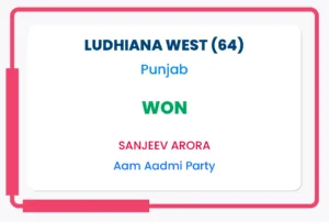 ਸ਼ੁਰੂਆਤੀ ਰੁਝਾਨਾਂ ਅਨੁਸਾਰ, ‘ਆਪ’ ਉਮੀਦਵਾਰ ਸੰਜੀਵ ਅਰੋੜਾ ਪੰਜਾਬ ਦੀ ਲੁਧਿਆਣਾ ਪੱਛਮੀ ਵਿਧਾਨ ਸਭਾ ਸੀਟ ਤੋਂ ਆਪਣੇ ਨਜ਼ਦੀਕੀ ਵਿਰੋਧੀ ਅਤੇ ਕਾਂਗਰਸ ਉਮੀਦਵਾਰ ਭਾਰਤ ਭੂਸ਼ਣ ਆਸ਼ੂ ਤੋਂ 7,000 ਤੋਂ ਵੱਧ ਵੋਟਾਂ ਦੇ ਫਰਕ ਨਾਲ ਅੱਗੇ ਵੱਧਦੇ ਹੋਏ ਜਿੱਤ ਵੱਲ ਵਧਦੇ ਜਾਪਦੇ ਸਨ ਅਤੇ ਹੁਣ ਓਹਨਾ ਵੱਲੋ ਜਿੱਤ ਦਰਜ਼ ਹੋ ਗਈ ਹੈ।