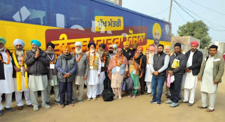 ਮਾਨਸਾ, 05 ਜਨਵਰੀ : ਮੁੱਖ ਮੰਤਰੀ ਪੰਜਾਬ ਸ. ਭਗਵੰਤ ਸਿੰਘ ਮਾਨ ਦੀ ਅਗਵਾਈ ਵਾਲੀ ਸੂਬਾ ਸਰਕਾਰ ਵੱਲੋਂ ਸ਼ੁਰੂ ਕੀਤੀ ਮੁੱਖ ਮੰਤਰੀ ਤੀਰਥ ਯਾਤਰਾ ਯੋਜਨਾ ਤਹਿਤ ਮਾਨਸਾ ਜ਼ਿਲ੍ਹੇ ਦੇ ਤਿੰਨੋਂ ਹਲਕਿਆਂ ਤੋਂ ਬੱਸਾਂ ਰਵਾਨਾ ਹੋਈਆਂ ਜਿੰਨ੍ਹਾਂ ਵਿਚ 120 ਸ਼ਰਧਾਲੂਆਂ ਦਾ ਜਥਾ ਪਵਿੱਤਰ ਸ਼ਹਿਰ ਅੰਮ੍ਰਿਤਸਰ ਵਿਖੇ ਧਾਰਮਿਕ ਸਥਾਨਾਂ ਦੇ ਦਰਸ਼ਨਾਂ ਲਈ ਗਿਆ।