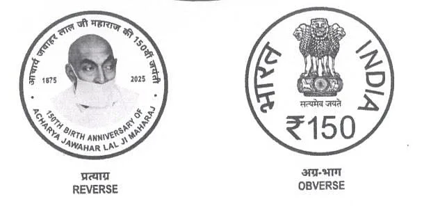 ਕੇਂਦਰ ਸਰਕਾਰ ਨੇ ਆਚਾਰੀਆ ਸ਼੍ਰੀ ਜਵਾਹਰ ਲਾਲ ਜੀ ਮਹਾਰਾਜ, ਇੱਕ ਸਤਿਕਾਰਯੋਗ ਜੈਨ ਸੰਤ, ਸੁਧਾਰਕ ਅਤੇ ਰਾਸ਼ਟਰੀ ਸ਼ਖਸੀਅਤ, ਜਿਨ੍ਹਾਂ ਦੀ 150ਵੀਂ ਜਯੰਤੀ ਇਸ ਸਾਲ ਮਨਾਈ ਜਾ ਰਹੀ ਹੈ, ਦੀ ਯਾਦ ਵਿੱਚ ਇੱਕ ਯਾਦਗਾਰੀ ਡਾਕ ਟਿਕਟ ਅਤੇ ਚਤੁਰਭੁਜ ਸਿੱਕਾ ਜਾਰੀ ਕਰਨ ਦਾ ਐਲਾਨ ਕੀਤਾ ਹੈ।