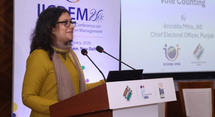 ਨਵੀਂ ਦਿੱਲੀ ਵਿੱਚ ਲੋਕਤੰਤਰ ਅਤੇ ਚੋਣ ਪ੍ਰਬੰਧਨ ’ਤੇ ਅੰਤਰਰਾਸ਼ਟਰੀ ਕਾਨਫਰੰਸ (ਆਈ.ਆਈ.ਸੀ.ਡੀ.ਈ.ਐਮ.) 2026 ਵਿੱਚ ਚੋਣ ਪ੍ਰਕਿਰਿਆ ਦੇ ਅਹਿਮ ਪੜਾਅ ਵਜੋਂ ਵੋਟ  ਗਿਣਤੀ ਦੀ ਮਹੱਤਤਾ ਬਾਰੇ ਬੋਲਦਿਆਂ ਪੰਜਾਬ ਦੀ ਮੁੱਖ ਚੋਣ ਅਧਿਕਾਰੀ ਅਨਿੰਦਿਤਾ ਮਿੱਤਰਾ ਨੇ ਇਸ ਗੱਲ ’ਤੇ ਜ਼ੋਰ ਦਿੱਤਾ ਕਿ ਭਾਰਤ ਦੀ ਵੋਟਾਂ ਦੀ ਗਿਣਤੀ ਇੱਕ ਮਜ਼ਬੂਤ ਸੰਵਿਧਾਨਕ ਫ਼ਤਵੇ ਅਤੇ ਲੋਕ ਪ੍ਰਤੀਨਿਧਤਾ ਐਕਟ, 1951 ਅਤੇ ਕੰਡਕਟ ਆਫ਼ ਇਲੈਕਸ਼ਨ ਰੂਲਜ਼, 1961 ਤਹਿਤ ਵਿਆਪਕ ਕਾਨੂੰਨੀ ਢਾਂਚੇ ਦੁਆਰਾ ਕੀਤੀ ਜਾਂਦੀ ਹੈ। ਇਹ ਵਿਵਸਥਾਵਾਂ ਦੇਸ਼ ਭਰ ਵਿੱਚ ਚੋਣ ਨਤੀਜਿਆਂ ਦੀ ਘੋਸ਼ਣਾ ਦੌਰਾਨ ਇਕਸਾਰਤਾ, ਨਿਰੰਤਰਤਾ ਅਤੇ ਭਰੋਸੇਯੋਗਤਾ ਨੂੰ ਯਕੀਨੀ ਬਣਾਉਂਦੀਆਂ ਹਨ।