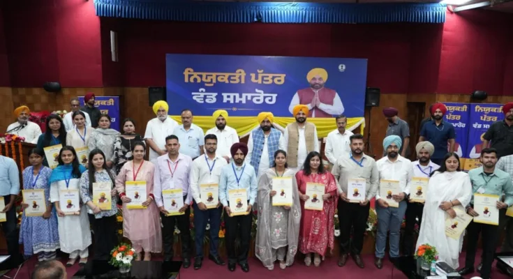 ਪੰਜਾਬ ਦੇ ਮੁੱਖ ਮੰਤਰੀ ਭਗਵੰਤ ਸਿੰਘ ਮਾਨ ਨੇ ਸੂਬੇ ਦੇ ਨੌਜਵਾਨਾਂ ਨੂੰ ਸਰਕਾਰੀ ਨੌਕਰੀਆਂ ਪ੍ਰਦਾਨ ਕਰਨ ਦੀ ਆਪਣੀ ਪਹਿਲਕਦਮੀ ਜਾਰੀ ਰੱਖਦਿਆਂ ਅੱਜ ਤੱਕ ਕੁੱਲ 54,422 ਨੌਜਵਾਨਾਂ ਨੂੰ ਨਿਯੁਕਤੀ ਪੱਤਰ ਸੌਂਪਣ ਦੀ ਪ੍ਰਕਿਰਿਆ ਨੂੰ ਮੁਕੰਮਲ ਕੀਤਾ।