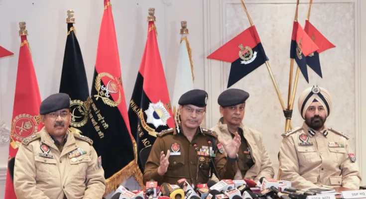 ਅੱਜ ਇੱਥੇ ਪੰਜਾਬ ਪੁਲਿਸ ਅਫਸਰ ਇੰਸਟੀਚਿਊਟ (ਪੀਪੀਓਆਈ) ਵਿਖੇ ਪ੍ਰੈਸ ਕਾਨਫਰੰਸ ਨੂੰ ਸੰਬੋਧਨ ਕਰਦੇ ਹੋਏ ਡੀਜੀਪੀ ਗੌਰਵ ਯਾਦਵ ਜਿਨ੍ਹਾ ਦੇ ਨਾਲ  ਵਿਸ਼ੇਸ਼ ਡੀਜੀਪੀ ਕਾਨੂੰਨ ਅਤੇ ਵਿਵਸਥਾ ਅਰਪਿਤ ਸ਼ੁਕਲਾ, ਏਡੀਜੀਪੀ ਐਂਟੀ-ਗੈਂਗਸਟਰ ਟਾਸਕ ਫੋਰਸ (ਏਜੀਟੀਐਫ) ਪ੍ਰਮੋਦ ਬਾਨ ਅਤੇ ਆਈਜੀਪੀ ਹੈੱਡਕੁਆਰਟਰ ਡਾ. ਸੁਖਚੈਨ ਸਿੰਘ ਗਿੱਲ ਵੀ ਮੌਜੂਦ ਸਨ , ਨੇ ਗੈਂਗਸਟਰਵਾਦ ਅਤੇ ਇਸਦਾ ਸਮਰਥਨ ਕਰਨ ਵਾਲਿਆਂ ਵਿਰੁੱਧ ਪੰਜਾਬ ਸਰਕਾਰ ਦੀ ਜ਼ੀਰੋ-ਟੌਲਰੈਂਸ ਨੀਤੀ ਨੂੰ ਦੁਹਰਾਇਆ।