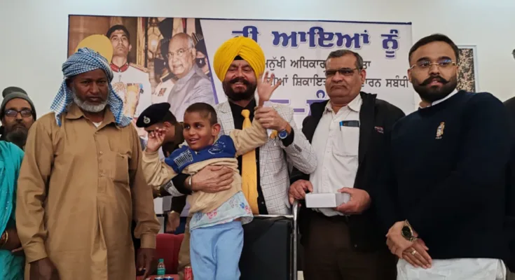 ਇਸ ਮੌਕੇ ਪ੍ਰਧਾਨ ਏਕਤਾ ਹੈਂਡੀਕੈਪਡ ਐਂਡ ਵਿਧਵਾ ਵੈੱਲਫੇਅਰ ਸੋਸਾਇਟੀ ਵੱਲੋਂ ਲੋੜਵੰਦ ਬੱਚੇ ਨੂੰ ਵੀਅਲ ਚੇਅਰ ਅਤੇ ਸੁਣਨ ਵਾਲੀ ਮਸ਼ੀਨ ਵੀ ਦਿੱਤੀ ।