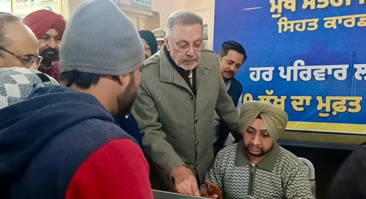 ਪੰਜਾਬ ਦੇ ਸਿਹਤ ਅਤੇ ਪਰਿਵਾਰ ਭਲਾਈ ਮੰਤਰੀ ਡਾ. ਬਲਬੀਰ ਸਿੰਘ ਨੇ ਅੱਜ ਰਾਜਪੁਰਾ (ਪਟਿਆਲਾ) ਦੇ ਸਿਵਲ ਹਸਪਤਾਲ ਵਿਖੇ ਅਤੇ ਟਰਾਂਸਪੋਰਟ ਤੇ ਜੇਲ੍ਹ ਮੰਤਰੀ ਸ. ਲਾਲਜੀਤ ਸਿੰਘ ਭੁੱਲਰ ਪੱਟੀ ਸ਼ਹਿਰ ਅਤੇ ਵੱਖ-ਵੱਖ ਪਿੰਡਾਂ ਵਿੱਚ ਮੁੱਖ ਮੰਤਰੀ ਸਿਹਤ ਯੋਜਨਾ ਤਹਿਤ ਰਜਿਸਟ੍ਰੇਸ਼ਨ ਮੁਹਿੰਮ ਦੀ ਅਗਵਾਈ ਕੀਤੀ। ਇਸ ਮੌਕੇ ਉਨ੍ਹਾਂ ਨੇ ਆਮ ਲੋਕਾਂ ਨੂੰ ਮੁੱਖ ਮੰਤਰੀ ਸਿਹਤ ਯੋਜਨਾ ਤਹਿਤ 10 ਰੁਪਏ ਤਕ ਮੁਫ਼ਤ ਇਲਾਜ ਦੇ ਲਾਭਾਂ ਬਾਰੇ ਵਿਸਥਾਰ ਨਾਲ ਜਾਣਕਾਰੀ ਦਿੱਤੀ ਅਤੇ ਸਿਹਤ ਕਾਰਡ ਬਣਾਉਣ ਦੀ ਪੂਰੀ ਪ੍ਰਕਿਰਿਆ ਨੂੰ ਅਸਾਨ ਸ਼ਬਦਾਂ ਵਿੱਚ ਸਮਝਾਇਆ।