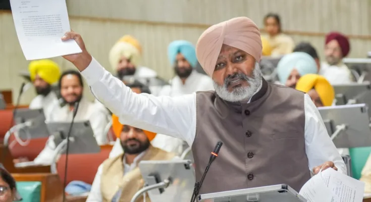 ਚੰਡੀਗੜ੍ਹ, 29 ਸਤੰਬਰ: ਪੰਜਾਬ ਦੇ ਵਿੱਤ ਮੰਤਰੀ ਐਡਵੋਕੇਟ ਹਰਪਾਲ ਸਿੰਘ ਚੀਮਾ ਨੇ ਅੱਜ ਪੰਜਾਬ ਵਿਧਾਨ ਸਭਾ ਦੇ ਫਲੋਰ ‘ਤੇ ਵਿਰੋਧੀ ਧਿਰ ਦੇ ਨੇਤਾ ਪ੍ਰਤਾਪ ਸਿੰਘ ਬਾਜਵਾ ‘ਤੇ ਤਿੱਖਾ ਹਮਲਾ ਬੋਲਦਿਆਂ ਉਨ੍ਹਾਂ ‘ਤੇ ਧੁੱਸੀ ਬੰਨ੍ਹ ਅੰਦਰ ਬਿਆਸ ਦਰਿਆ ਦੇ ਕੰਢੇ ‘ਤੇ ਰੇਤ ਦੀ ਮਾਈਨਿੰਗ ਦੇ ਮਕਸਦ ਨਾਲ ਜ਼ਮੀਨ ਖਰੀਦਣ ਅਤੇ ਫਿਰ ਰਾਜ ਸਰਕਾਰ ‘ਤੇ ਜਨਤਕ ਫੰਡ ਰਾਹੀਂ ਉਸ ਜ਼ਮੀਨ ਦੀ ਰੱਖਿਆ ਵਾਸਤੇ ਡੰਗੇ ਲਗਾਉਣ ਲਈ ਦਬਾਅ ਪਾਉਣ ਦਾ ਦੋਸ਼ ਲਾਇਆ।