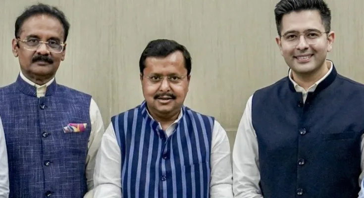 ਚੱਢਾ ਨੇ ਰਾਜ ਸਭਾ ਦੇ ਸੱਤ ਮੈਂਬਰਾਂ ਦੀ ਸੂਚੀ ਦਿਖਾਈ, ਜਿਨ੍ਹਾਂ ਵਿੱਚ ਉਹ ਖੁਦ ਵੀ ਸ਼ਾਮਲ ਸਨ, ਜੋ ‘ਆਪ’ ਤੋਂ ਵੱਖ ਹੋ ਗਏ ਸਨ। ਹਾਲਾਂਕਿ, ਹੁਣ ਤੱਕ, ਸਿਰਫ਼ ਚੱਢਾ ਅਤੇ ਦੋ ਹੋਰ ਲੋਕ ਹੀ ਅਧਿਕਾਰਤ ਤੌਰ ‘ਤੇ ਭਾਜਪਾ ਵਿੱਚ ਸ਼ਾਮਲ ਹੋਏ ਹਨ।